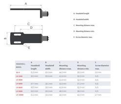 Hier finden Sie Ortofon Headshells Dimensionstabelle.