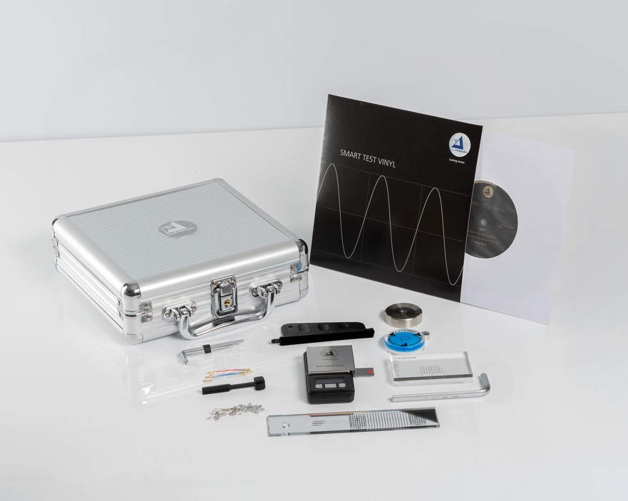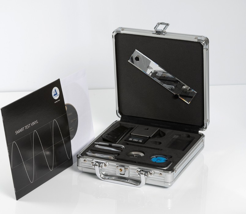 Ergänzt wird die Ausstattung durch die Testschallplatte clearaudio Smart Test Vinyl, eine Mini-Wasserwaage,