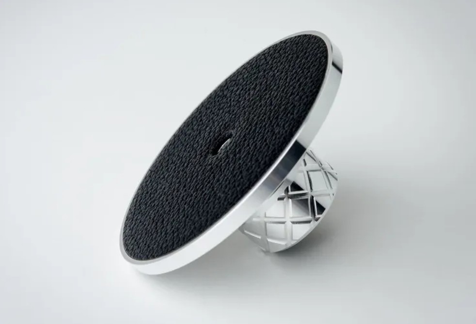ohne Gewichtserhöhung und damit verbundenem Rumpeln. Der Anpressdruck kann dem Wölbungsgrad der Platte entsprechend, fein eingestellt werden.